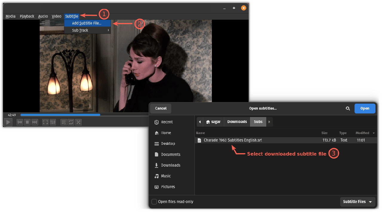 如果你从网上下载了字幕,但不知道如何在 VLC 中使用它们,那么本节将解决该问题。
