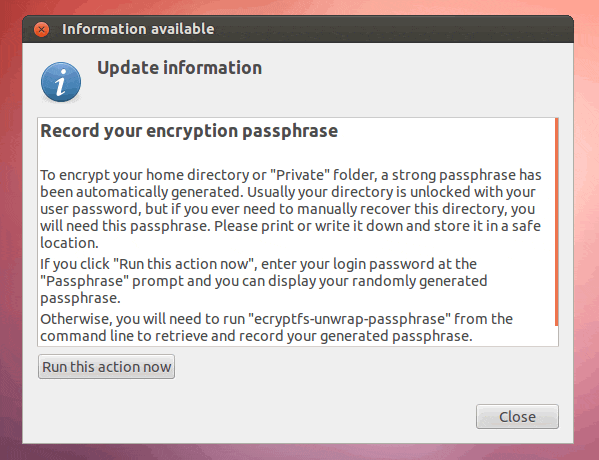 目前为止 Ubuntu 的几个版本在安装的时候都有选项让您选择是否加密主文件夹,不过如果由于一些原因,您没有选择或者忘记了选择加密主文件夹,那么我们也可以在安装后在来使用这个功能。