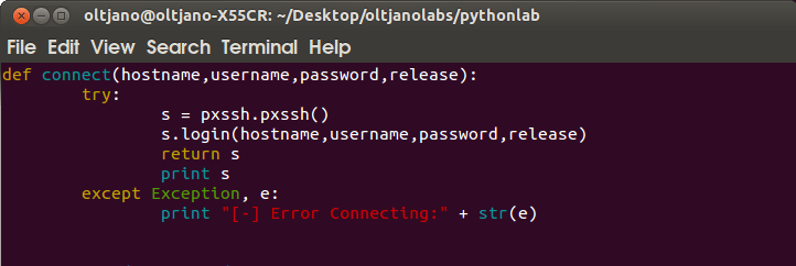 之后我们创建一个函数,使用pxssh创建并开始一个到ssh服务器的连接。