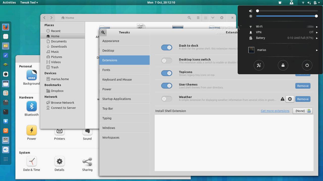 因此,我打开火狐浏览器,来到GNOME扩展页面,更新升级了其中最重要的一部分,然后用第三方主题对我的GNOME进行了美化。没办法~我就是要我的GNOME够酷够拽够炫!