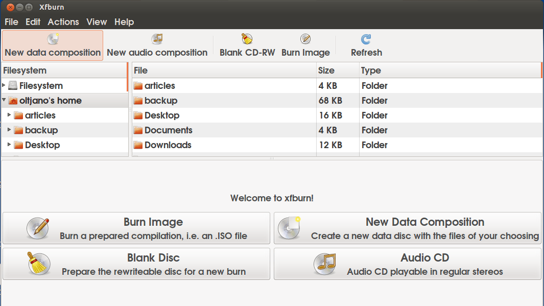 Xfburn是另一个能够刻录CD/DVD的工具,它可以很好的运行在Xfce桌面环境中。它非常快速,轻量级,能够刻录视频CD和DVD。如果你不想为了K3b而安装KDE桌面环境的话,它会是最好的选择。