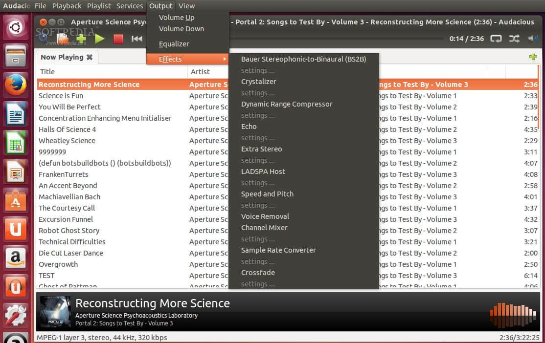 Audacious的优势之一是默认包括的音效,如去除人声,采样率转换器,通道混合器,速度和间距,以及更多。