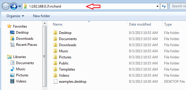 通过Windows访问文件时,点击开始 –> 运行然后输入如下内容。或者打开资源管理器输入如下内容,如图。