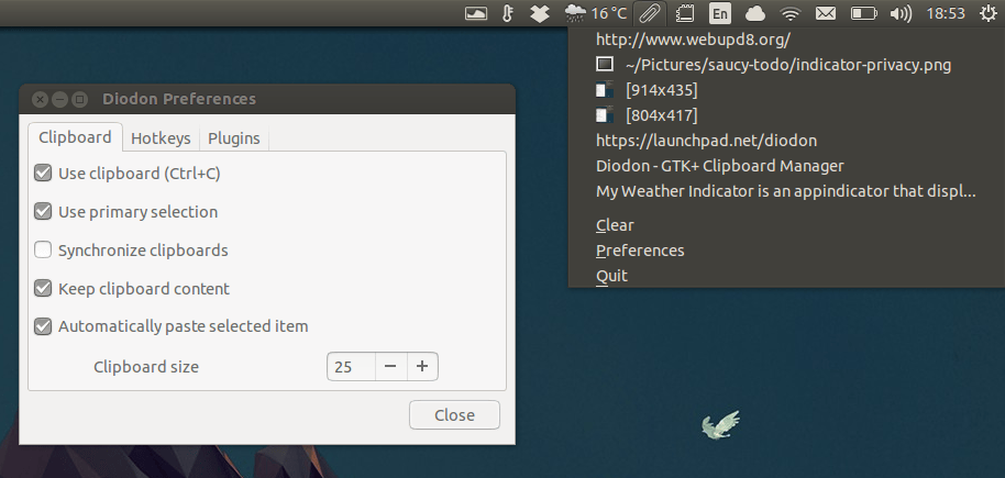 你可能还需要一个剪切板管理器,试试Diodon 吧,这是款轻量型软件,支持文件、图像等。点击下面的按钮安装: