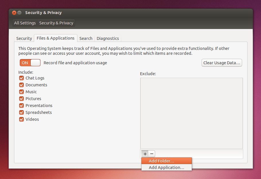 另外一种在Ubuntu 13.10中设置隐私的方法是使用隐私指示器,这是一款让你快捷设置启用/屏蔽Zeitgeist 或者在线搜索结果的软件,并能清除Zeitgeist日志和最近文件(显示先边栏的“最近”里面)。