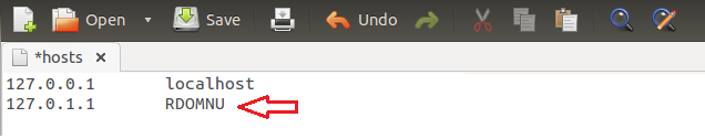接下来,无论旧的计算机名字是什么,换一个新的吧。例如,如果你想要你的计算机名字为“RDOMNU”,先删除文件内容,输入 RDOMNU,然后保存文件。