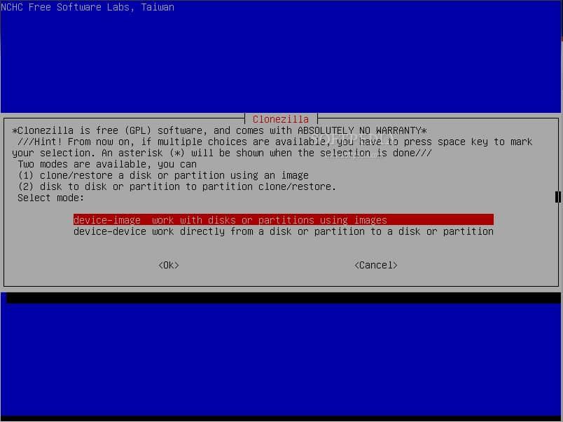 通过Clonezilla(再生龙) Live 2.2.0-13 备份和恢复设备