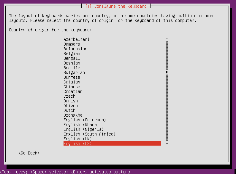 选择键盘布局(译注:如下图的英文即可):