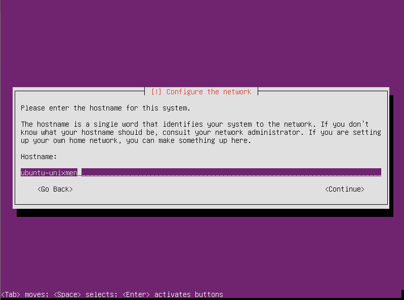 输入你的服务器主机名(译注:作为服务器,尤其是运行在互联网上的,一般都输入包括域名在内的完全限定主机名。):