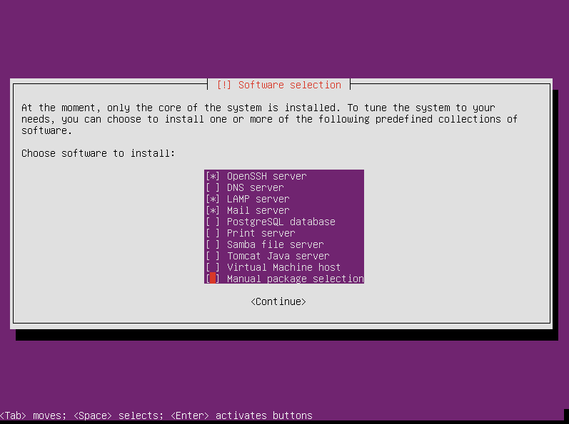 选择要安装的软件(译注:仅仅选择你的服务器所必须的,暂时不用的,最好不要选择。将来需要增加或许修改时,你还有足够的时间去改变。):