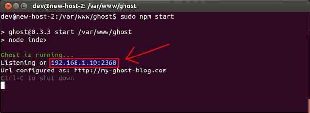 $ cd /var/www/ghost $ sudo npm start