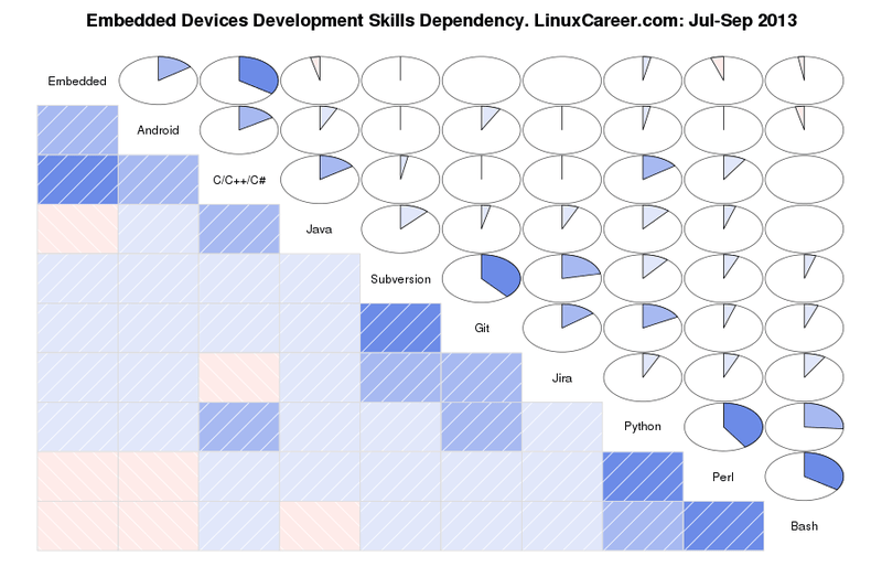 报告指出在上一季度具有嵌入式开发人员相关技能的人才是Linux专业雇主亟需的一类。排在第二位和第三位涉及的技能领域分别对应虚拟化技术和LAMP管理。本文将基于这三类工作清单涉及到的技能需求加以讨论,并对分析后的三组技能间的依赖结构关系加以洞悉。