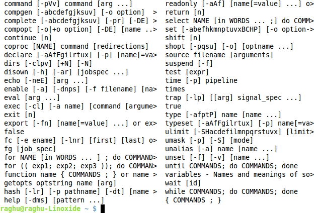 我们可以使用 help 命令来查看所有的内部命令(help 命令本身也是一个内部命令):