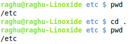 大部分情况下,cd . 是不会改变你的 PWD。举例来看: