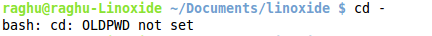 我们上一次的工作目录会被储存在 OLDPWD 这个变量中。但是如果你在一个新开启的终端中来使用的话,会报出下面的错误: