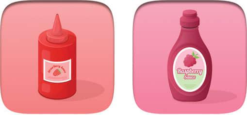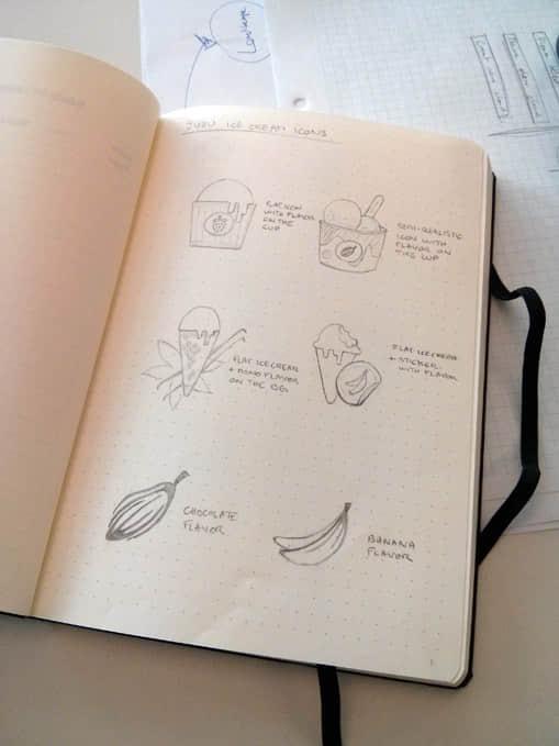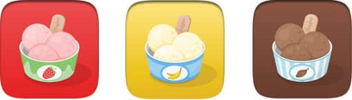 最初我以缩略图和设计思想的方式使用一种扁平外观的图标。这种方式对冰激凌来说很有用,但是对点缀物作用不大 —— 不久之后我发现它们变成半分离的现代主义,很难辨认。