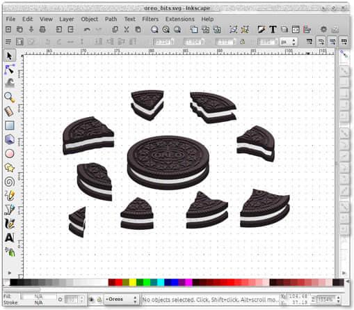 Inkscape 中的克隆工具得到了用武之地:在不同分布层上重复同样的小尺寸使得最后的 SVG 文件更加轻巧,也使 Inkscape 运行得更快。