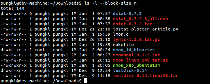$ ls -l --block-size=M