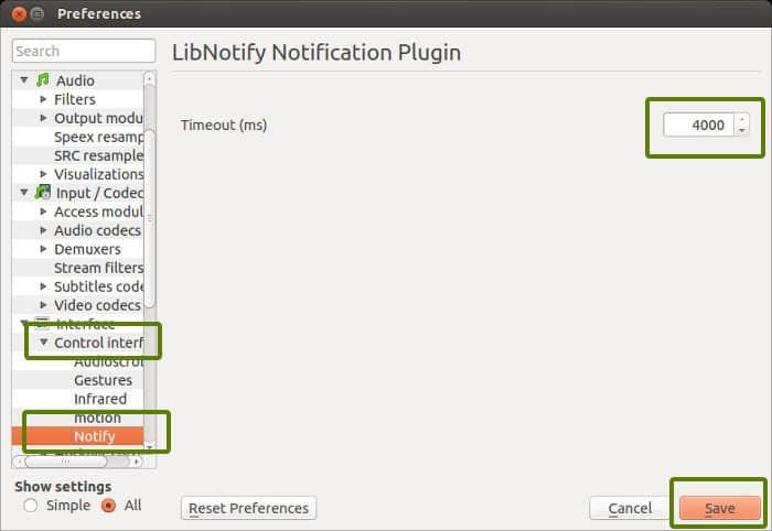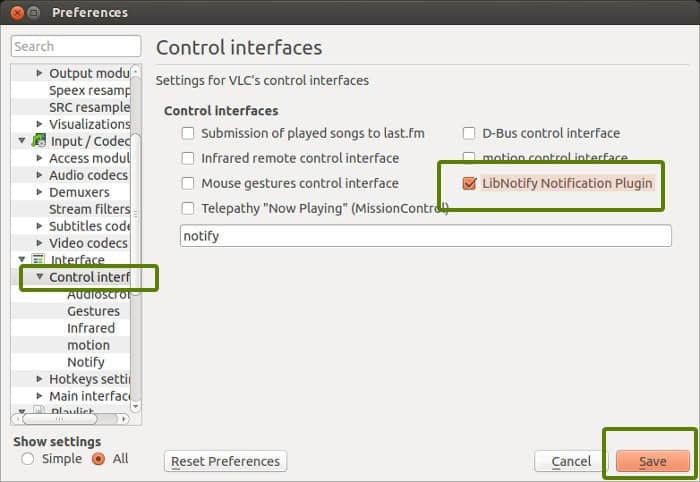 在 Ubuntu 下启用 VLC 桌面通知: