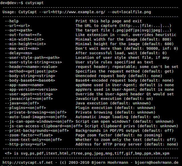 下图显示了CutyCapt命令选项。