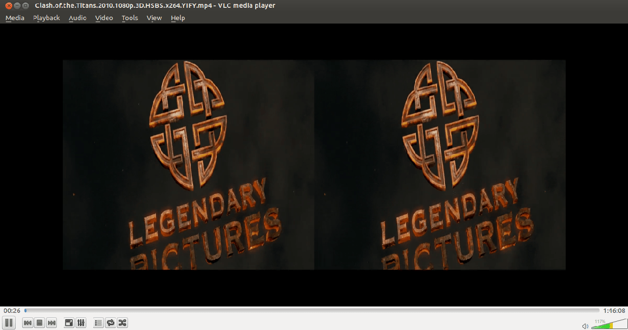 Q: 我下载了一部高品质 3D 电影,但是当我用 VLC 播放器播放的时候,画面被分割成两个部分,我可不想这样欣赏我的高清大片。