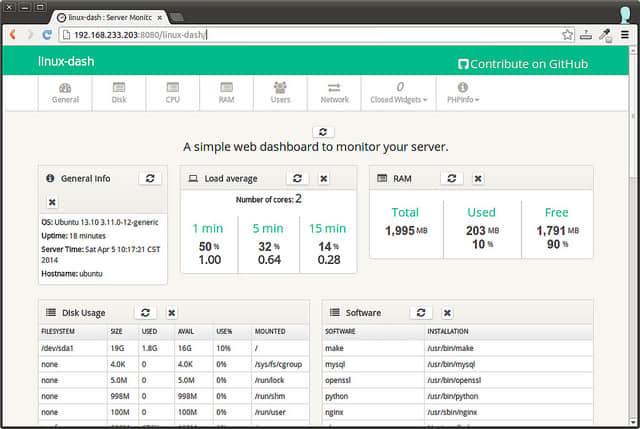 要在web浏览器上访问linux-dash,只需在web浏览器中输入http://