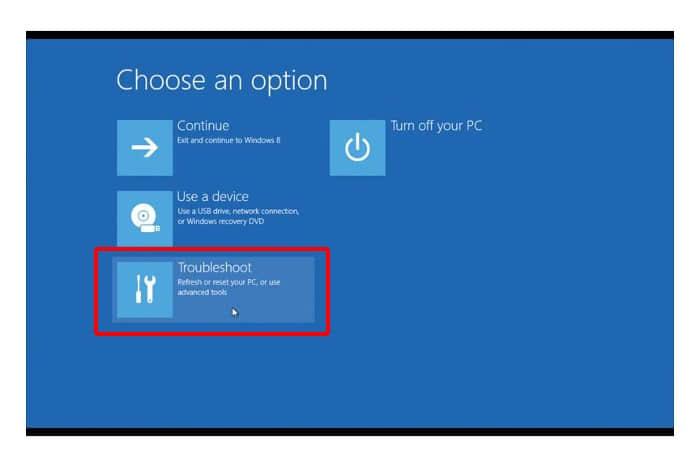 当您单击了立即重新启动按钮,在下一页屏幕中,你将会看到一些可以选择的选项。这里选择疑难解答: