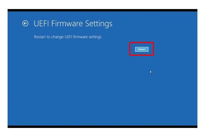 接下来,在UEFI设置里,点击重新启动按钮重新启动您的系统,就会看到类似BIOS一样的界面。