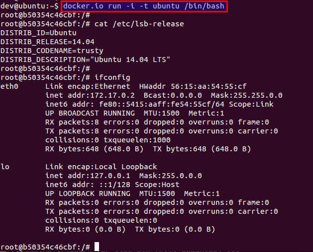上面的命令会立即启动 Ubuntu container 容器(这是一个完美的容器!),然后它会提供一个 shell 提示符运行环境给你。现在开始你可以通过这个沙箱环境访问一个完整的 Ubuntu 系统了。