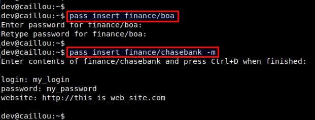 要将新的密码信息插入到本地密码仓库中,请遵循以下命令格式:
