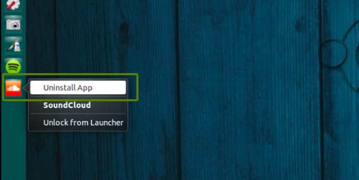 运行声云(SoundCloud),在Unity启动器上右击声云(SoundCloud)图标,然后点击卸载应用(uninstall app)。