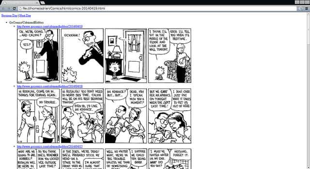 下面的命令会下载所有关于Calvin and Hobbes的连载并生成一个网页,可以在你的浏览器中看到一个漂亮的网页,呈现出所有连载漫画。