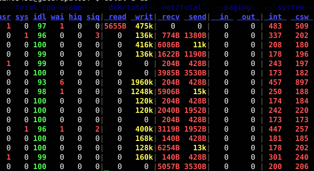 dstat将以列表的形式为你提供选项信息并清晰地告诉你是在何种幅度和单位显示输出。这样更好地避免了信息混乱和误报。更重要的是,它可以让你更容易编写插件来收集你想要的数据信息,以从未有过的方式进行扩展。