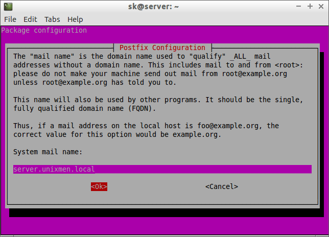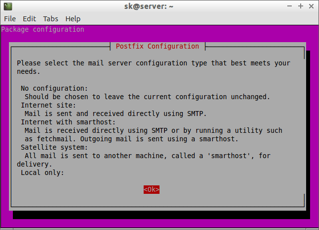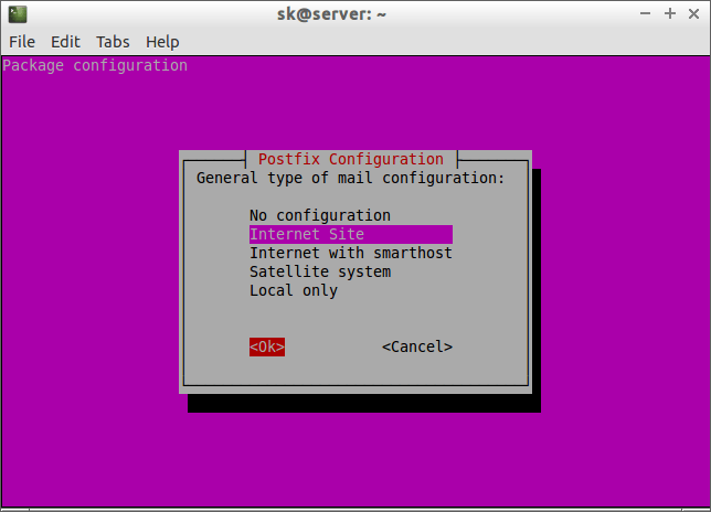 Bacula默认使用Postfix MTA。安装过程中,你会被要求配置Postfix。