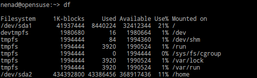- df – 显示你的硬盘的当前可用空间
