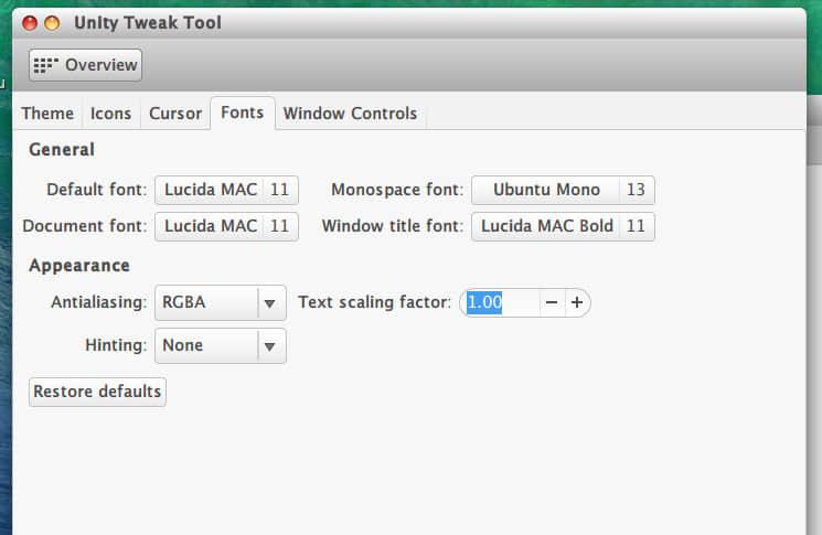 为了修改GTK主题,图标,系统主题,光标,字体我们需要安装unity tweak。要安装unity tweak在ubuntu14.04上通过使用如下命令: