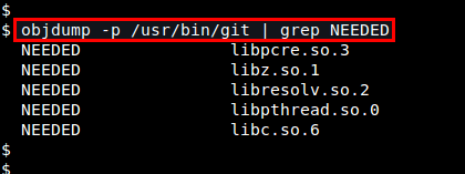 要找出某个特定可执行依赖的库,可以使用ldd命令。这个命令调用动态链接器去找到程序的库文件依赖关系。