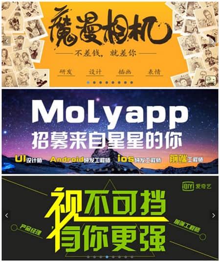 1、“招聘”首页热门公司招聘“轮播”展示。