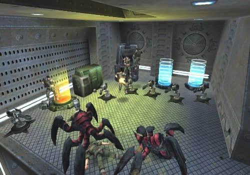 ** 游戏介绍 **:游戏背景可推测设定在未来,在那个时代人类与蜘蛛外形的外星人进行战斗。玩家可以在两个仅有的种族——人类与外星人——中选择自己的种族,每个种族的玩家都可以像即时战略游戏一样在游戏中进行建筑。其中最重要的建筑是重生点,重生点允许死亡的队友重新加入游戏。