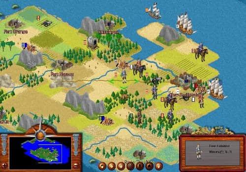 ** 游戏介绍 **:游戏时的目标是开拓新的殖民世界。游戏设定开始于 1492 年,初始有几艘船以及一些殖民者,玩家通过殖民者进行建筑并殖民扩张,同时与其他欧洲殖民者进行对抗。殖民者的扩张在欧洲王国的帮助下进行直到不再需要任何来自欧洲的协助,这表明殖民者已经独立并且不再需要任何来自外部的协助,接着宣布从王国独立出来。如果殖民者可以抵挡住来自王国的攻击,那么游戏就获胜了。
