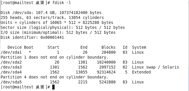 简单吧!这时,你就可以执行#fdisk -l 查看自己的分区了,会多出一个硬盘,效果见图: