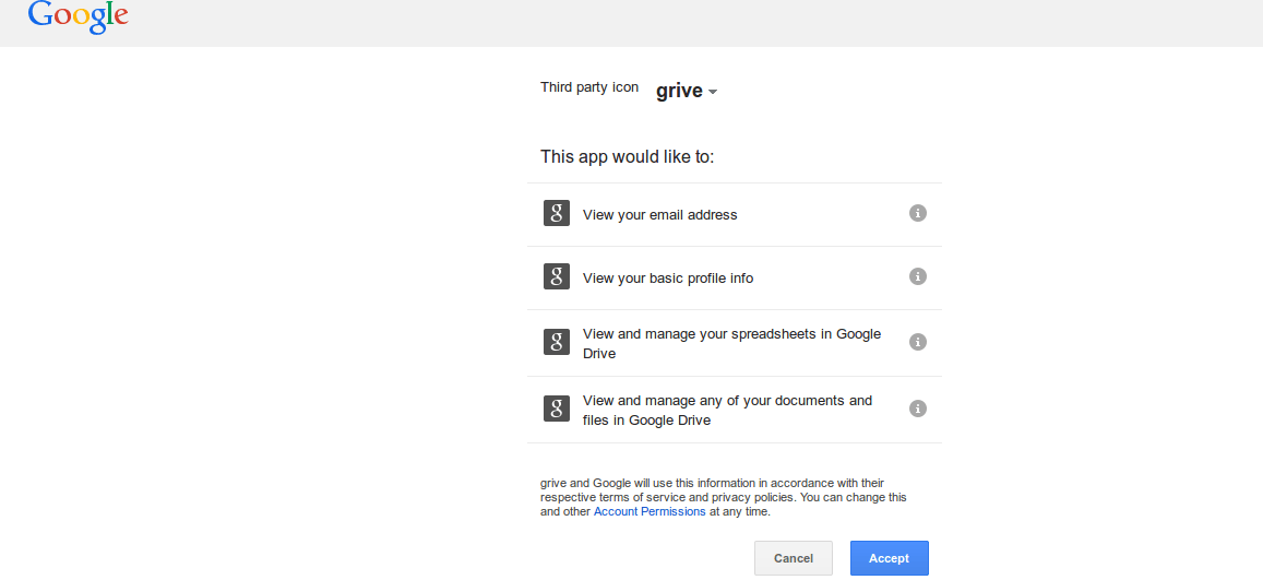 登入你的Google帐号,并点击接受,如下所示: