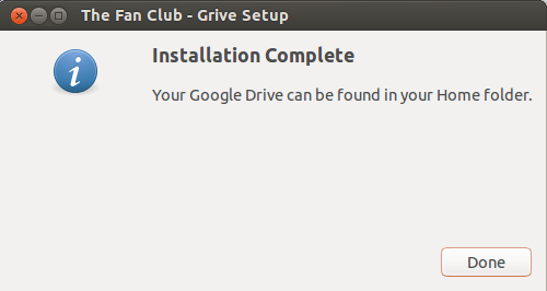 点击下一步后,将会开始同步google drive到你家目录下的‘Google Drive’文件夹。完成后,将出现如下窗口。