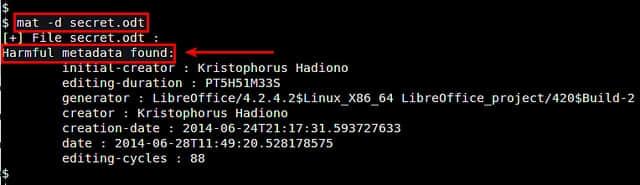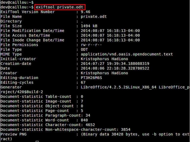 为了检查任何敏感的元数据,先前往文件所在的目录,然后运行: