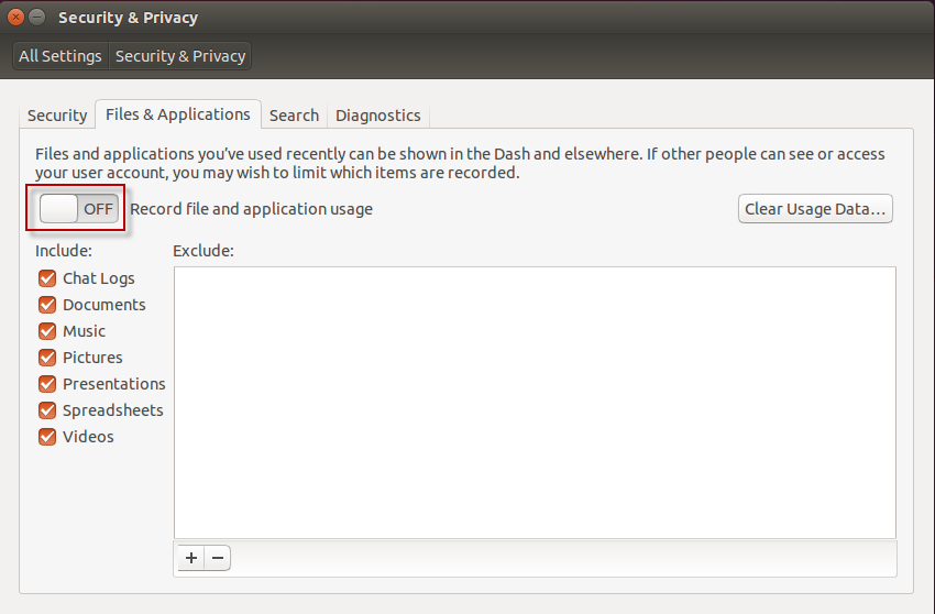 你也可以关闭“记录文件与应用使用(Record file and Application usage)以阻止系统记录你当前使用的文件和应用。