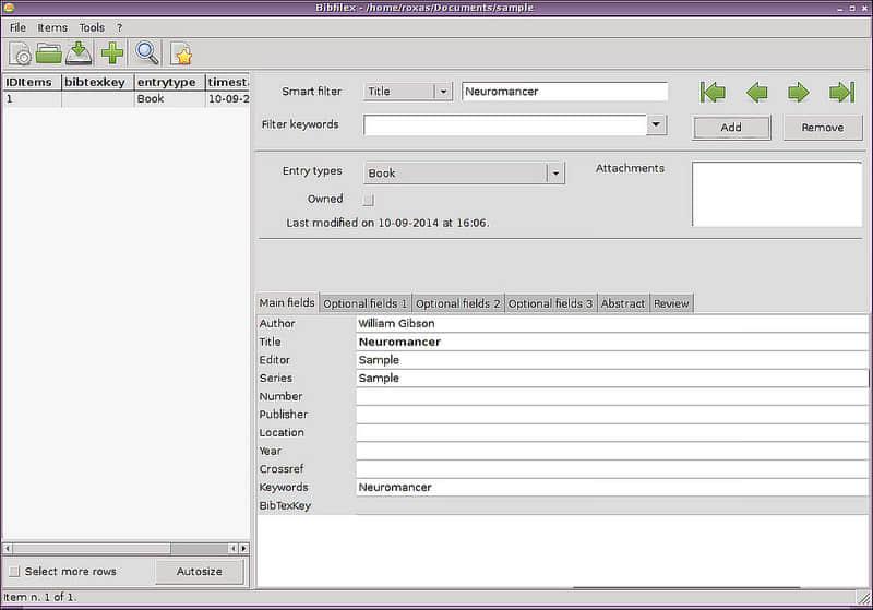 可以运行在Gtk 和Qt 环境中,Bibfilex是一个基于 Biblatex 的界面友好的工具。相对于JabRef 和KBibTex ,缺少了一些高级的功能,但这也让他更加的快速和轻巧。不用想太多,这绝对是快速做文献目录的一个聪明的选择。界面很舒服,仅仅反映了一些必要的功能。我给出了其使用的完全手册,你可以从官方的下载页面去获得。