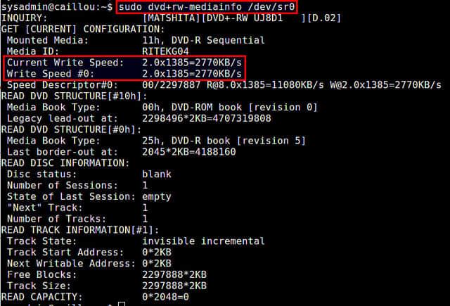 $ sudo dvd+rw-mediainfo /dev/sr0