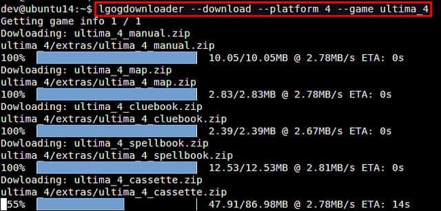 $ sudo apt-get install build-essential libcurl4-openssl-dev liboauth-dev libjsoncpp-dev libhtmlcxx-dev libboost-system-dev libboost-filesystem-dev libboost-regex-dev libboost-program-options-dev libboost-date-time-dev libtinyxml-dev librhash-dev help2man $ tar -xvzf lgogdownloader-2.17.tar.gz $ cd lgogdownloader-2.17 $ make release $ sudo make install