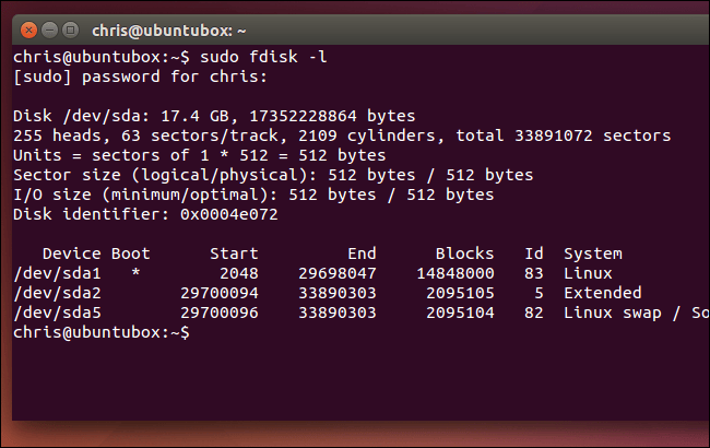 你可以使用fdisk -l命令来查看该信息。在Ubuntu上,打开终端并运行以下命令: