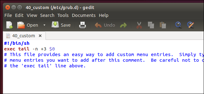 你需要以root特权打开/etc/grub.d/40_custom文件来编辑。在Ubuntu上,你可以通过打开终端窗口,并运行以下命令来完成: